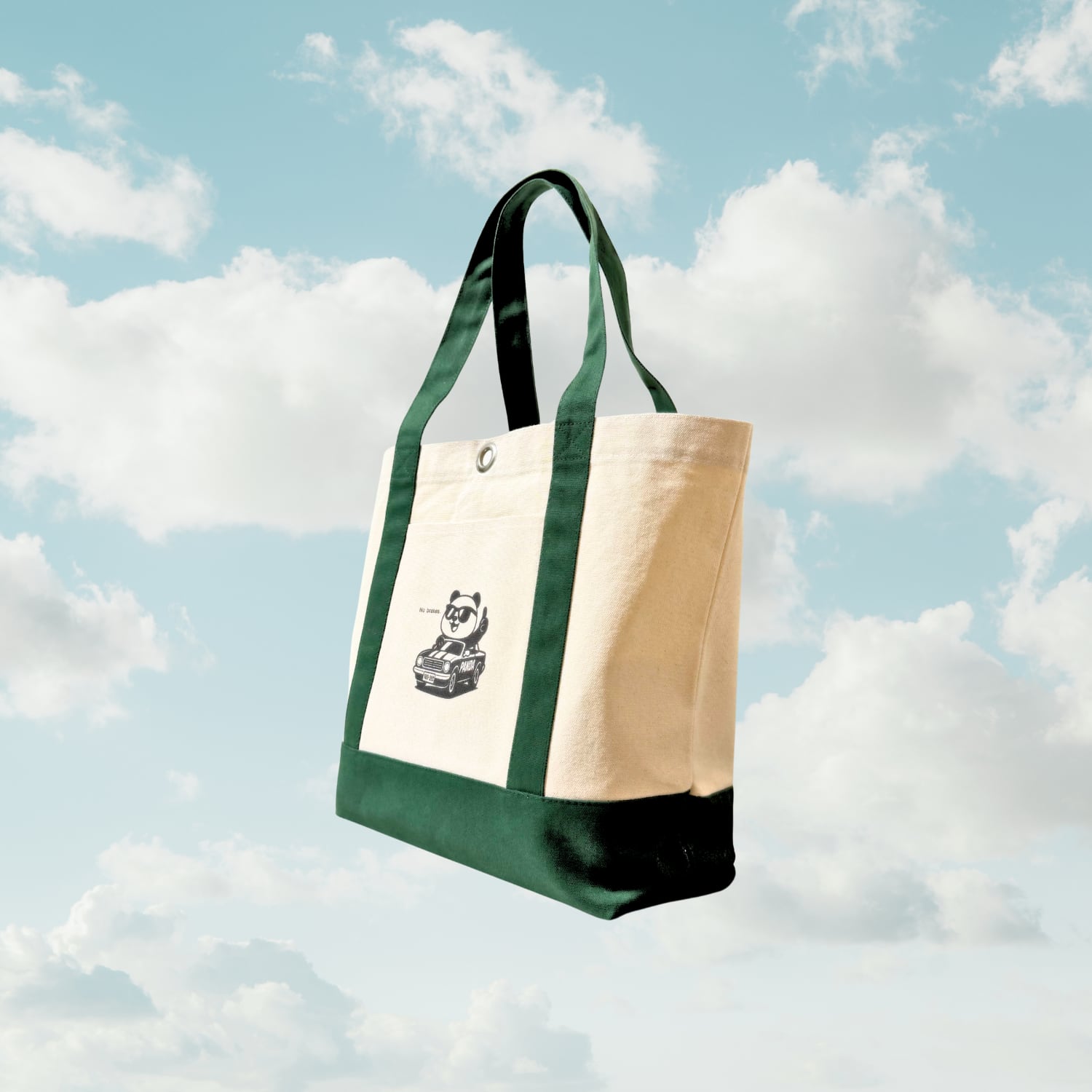 表面にはサムズアップをCoolにキメながら、余裕たっぷりにアメ車を乗りこなすパンダのプリント。
