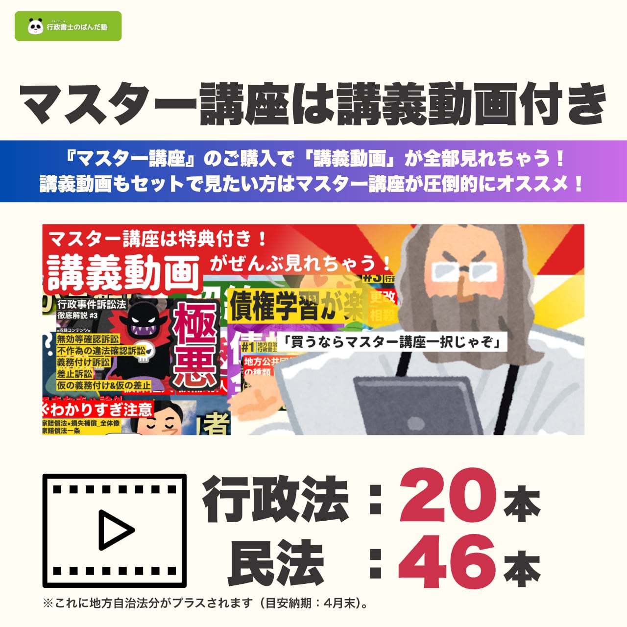 『行政法と民法を極める』ならマスター講座! 2026年度の行政書士試験に本気で合格されたい方におすすめの講座です。